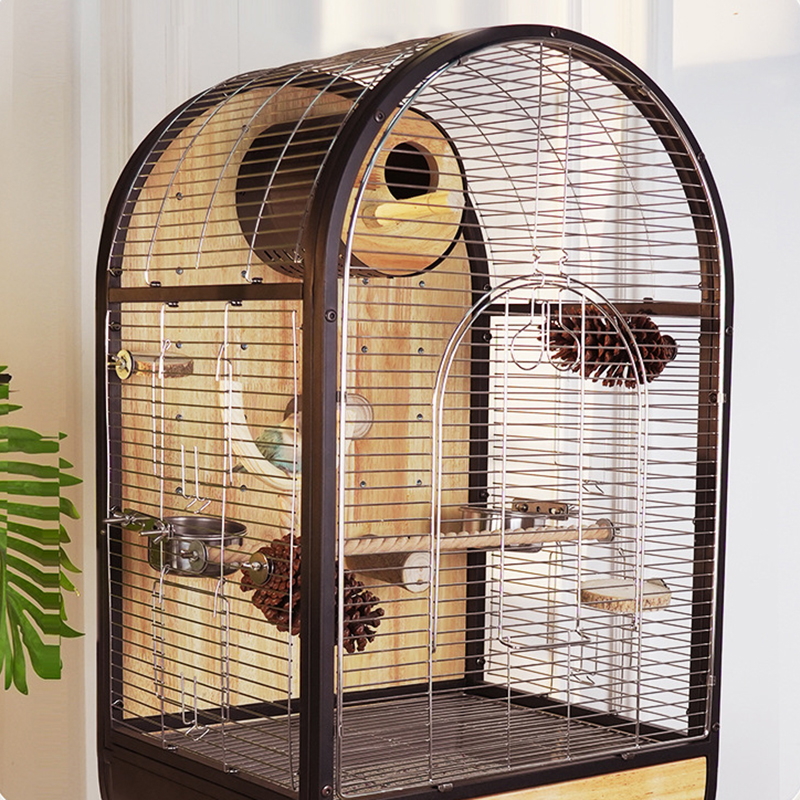 يجمع هذا القفص الخشبي للطيور بشكل مثالي بين الوظائف العملية والجماليات البيئية ، مما يوفر مساحة معيشة آمنة وصحية للطيور.